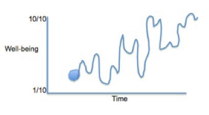 Many patients want to attain 10 out of 10 health immediately. Most expect the road to recovery to be a straight line from points A to Z that happens in a time frame of “yesterday”. We all know this is not realistic, but it is truly how many people feel and what they expect. In reality, the road to recovery is not a straight line, there is some back and forth, and it can look more like something below.